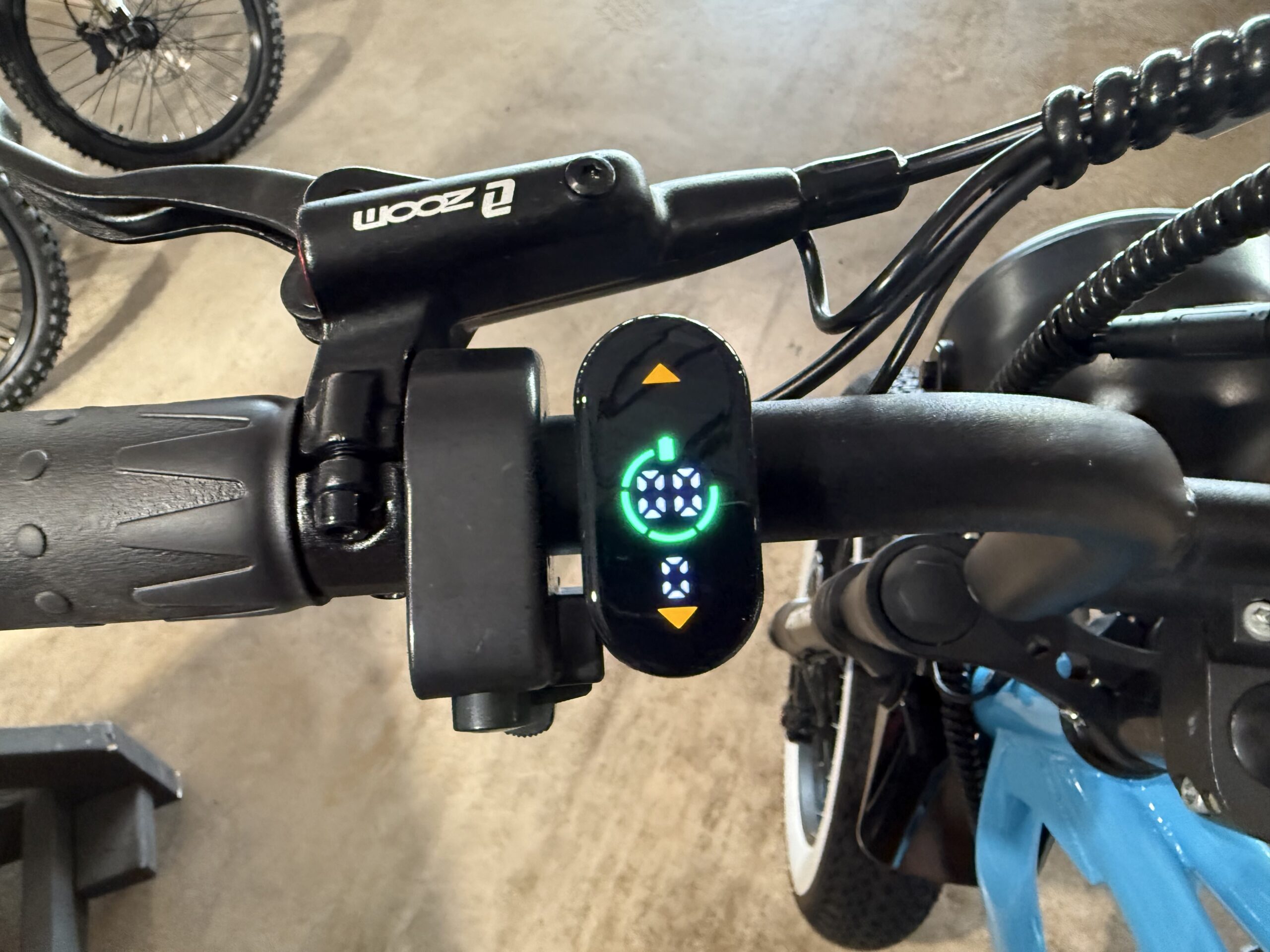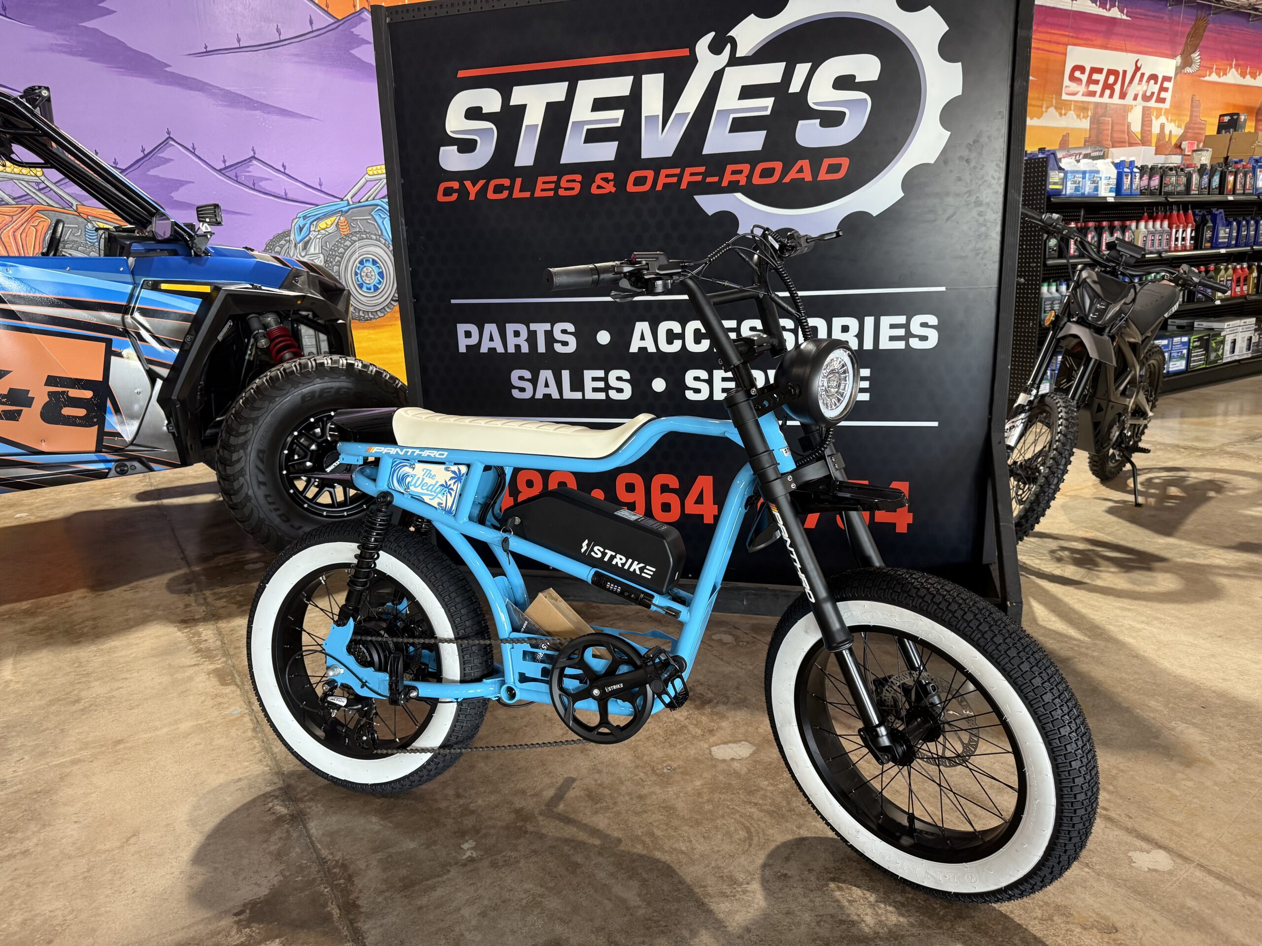 When purchased here with us here at Steve’s cycles they come with a kickstand and the throttle add on so you can use peddle assist or just twist the throttle and go! Bikes also come with a built-in bike lock on the side so you never have to worry about carrying your chain or cable to keep it safe, running lights and brake light on the back with turn signals, has a horn, and also has something nothing else has in that storage underneath the battery for cargo or a water or anything else you can think of that will fit!