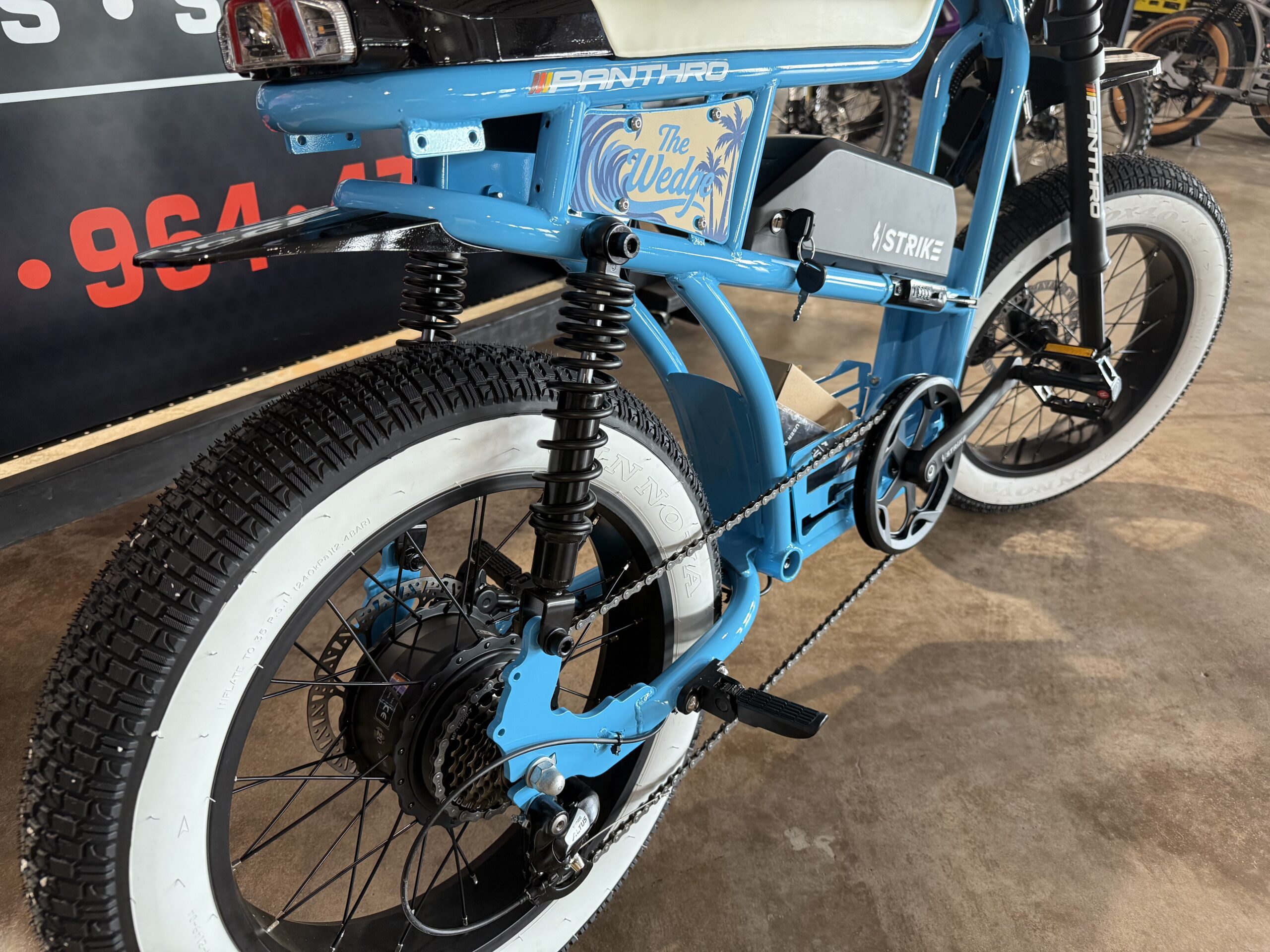 The All-New Panthro E-bike from Golden Cycles is finally here. Equipped with a powerful 750W motor and a 48V battery it is sure to have enough power and range to get where you want to go. Whether it’s commuting bustling streets on your way to work or strolling on your favorite boardwalk these bikes are sure to be great to ride!